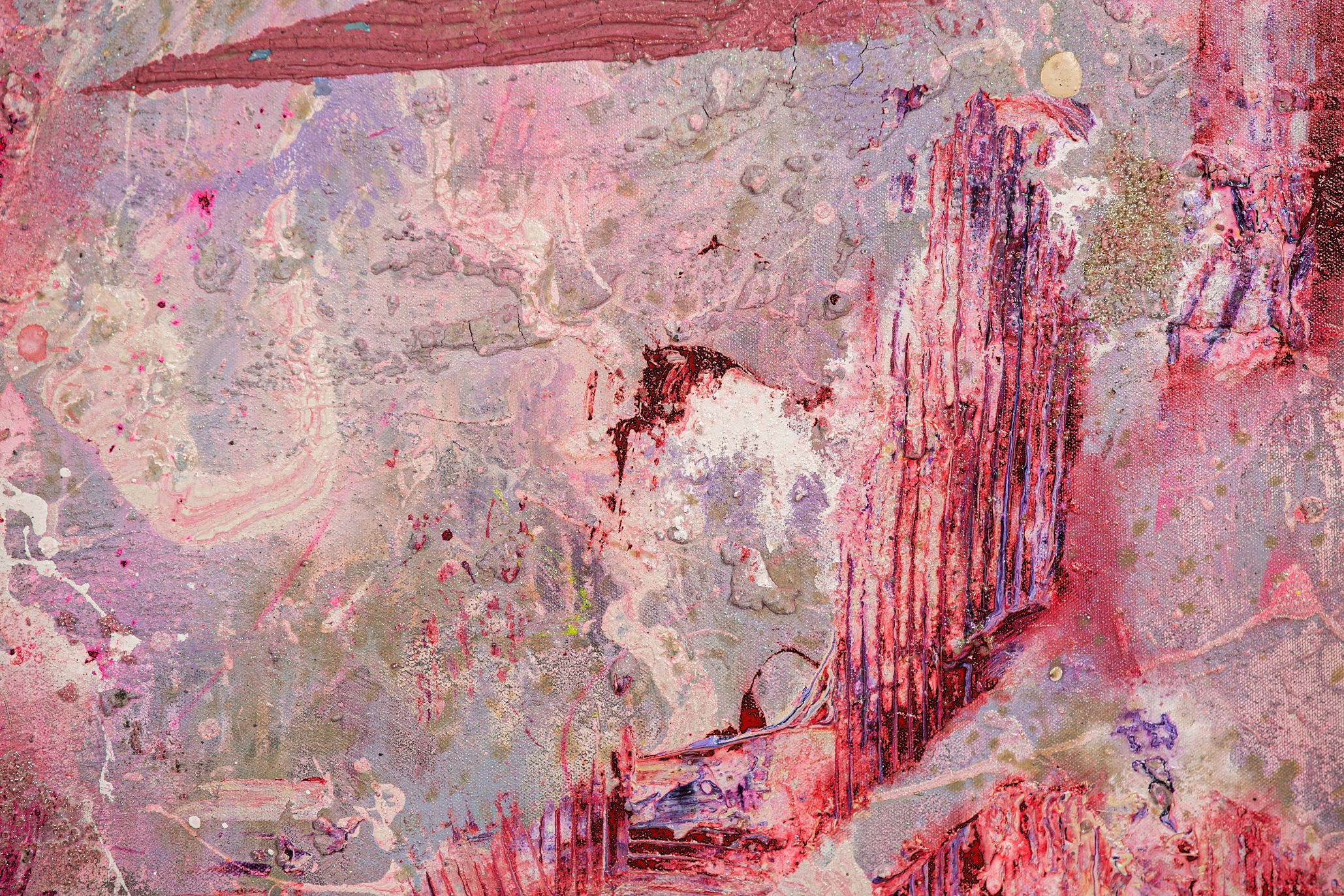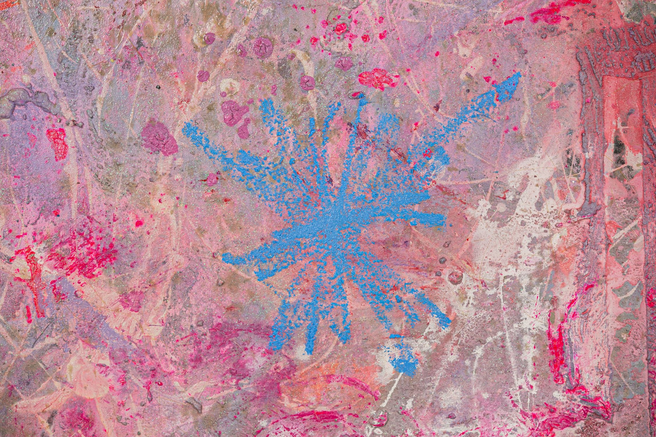 Made from glitter, confetti, plastic tube confetti, glass beads, crushed glass, reflective pigments, oil stick, clay, concrete, utility paint, gesso, oil, acrylic, damar, uv archival spray on stretched canvas.