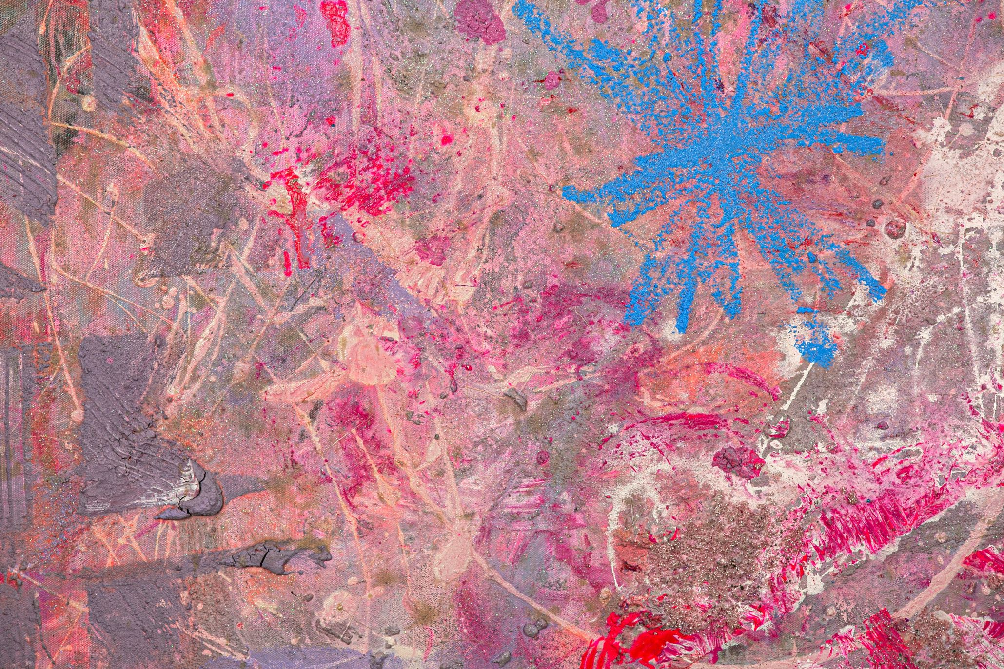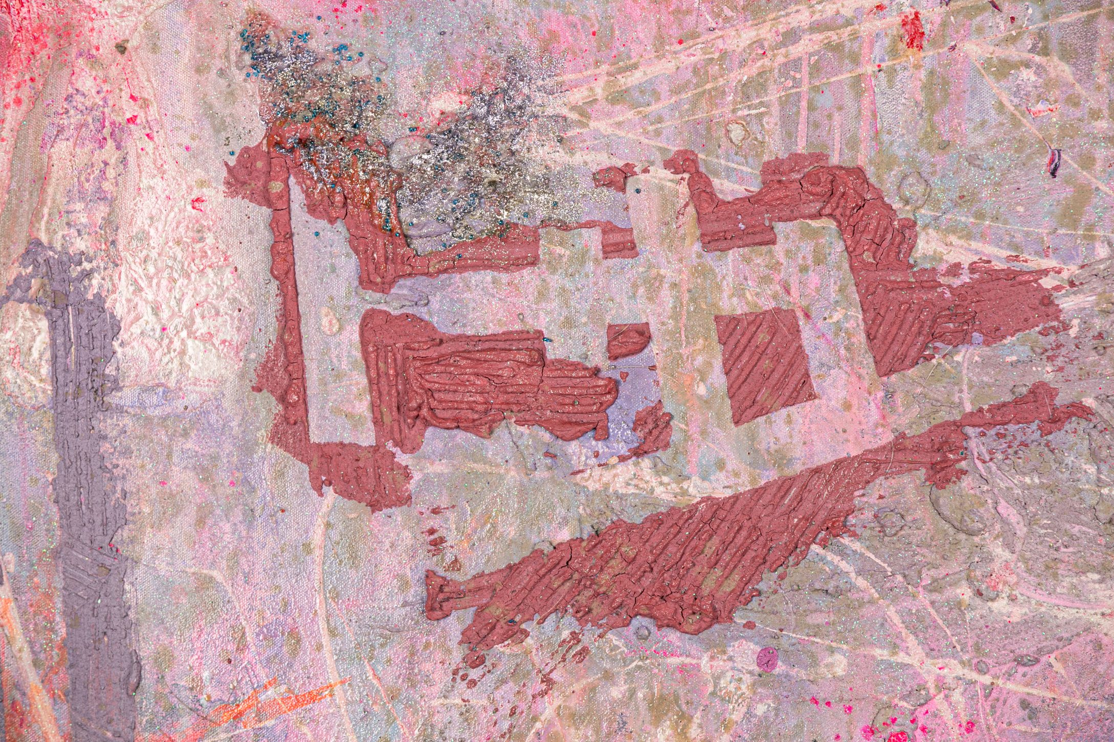 Made from glitter, confetti, plastic tube confetti, glass beads, crushed glass, reflective pigments, oil stick, clay, concrete, utility paint, gesso, oil, acrylic, damar, uv archival spray on stretched canvas.
